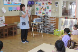 「絶対にきれいになってるもん!」と自信満々の子も、爪や指の間に汚れが残っていることがわかり、ショックを受ける子もちらほら・・・。手洗いの大切さを再確認することができました。