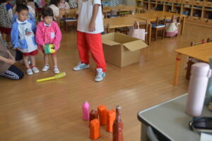ワニワニパニック、わなげ、ボーリング、もぐらたたき、ドッチボールなど、子ども達にもわかるように遊びを説明してくれたり、優しく遊んでくれました。