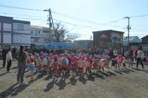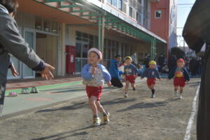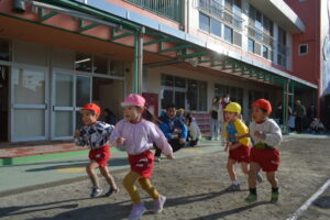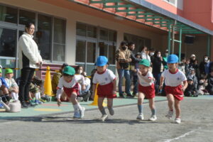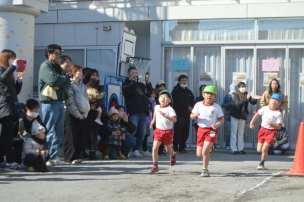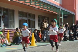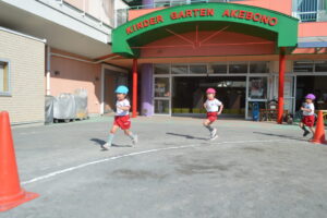 年少はトラック2周(120m) 年中は3周(180m) 年長は5周(300m)を走りました。
